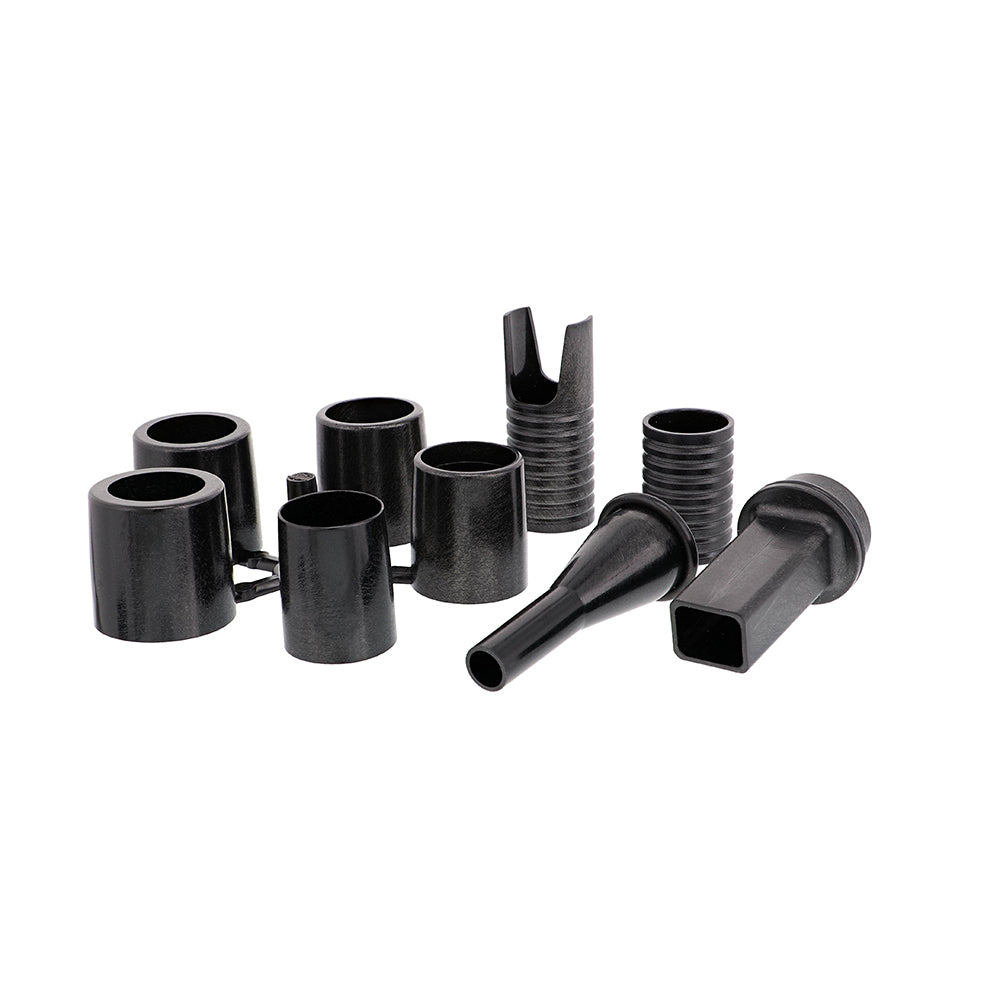 - Adjustable nozzles for almost all inflatables and valve types
